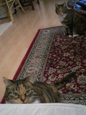 夫の不在を過度に満喫して怠惰にソファーでゴロゴロ快適生活を送っていると出るのがネコ警告。警告というと映画なんかでは通常「ブーッブーッ」というブザーの音だったり、チカチカ光る赤いランプだったりしますが、わが家のネコ警告は音も光も控え目な 無言の視線 × 2 です。Warnung, Warnung, Essenszeit?